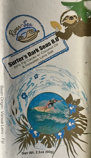 A ripcurl trying to funnel thru Fiji cacáo, Hawai'i Lava salt &, presumably, Indonesia coconut oil.
