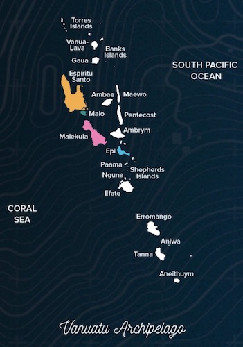 Epi: slate brown with a drop of rosacea Santo: incorporates slight golden hue Malo: trace orange Malekula: reddish-orange shade for browned-sienna |